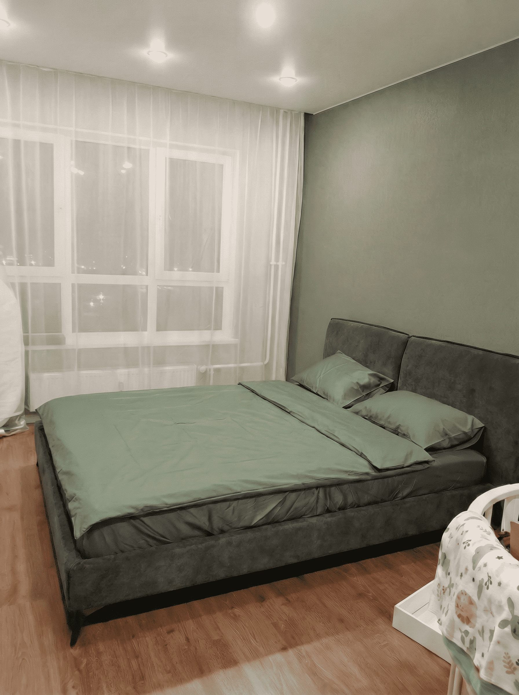 Очень понравилась мягкая плюшевая обивка, к ней приятно прикасаться и она не манит котов попробовать на ней когти) Спинка создаёт уютное пространство и дарит чувство защищённости, а ламели спокойно выдерживают вес матраса и взрослого человека. Тк для меня было принципиально выбрать именно кровать из-за маленькой дочки и совместного укладывания, я очень долго сомневалась и искала что-то подходящее.